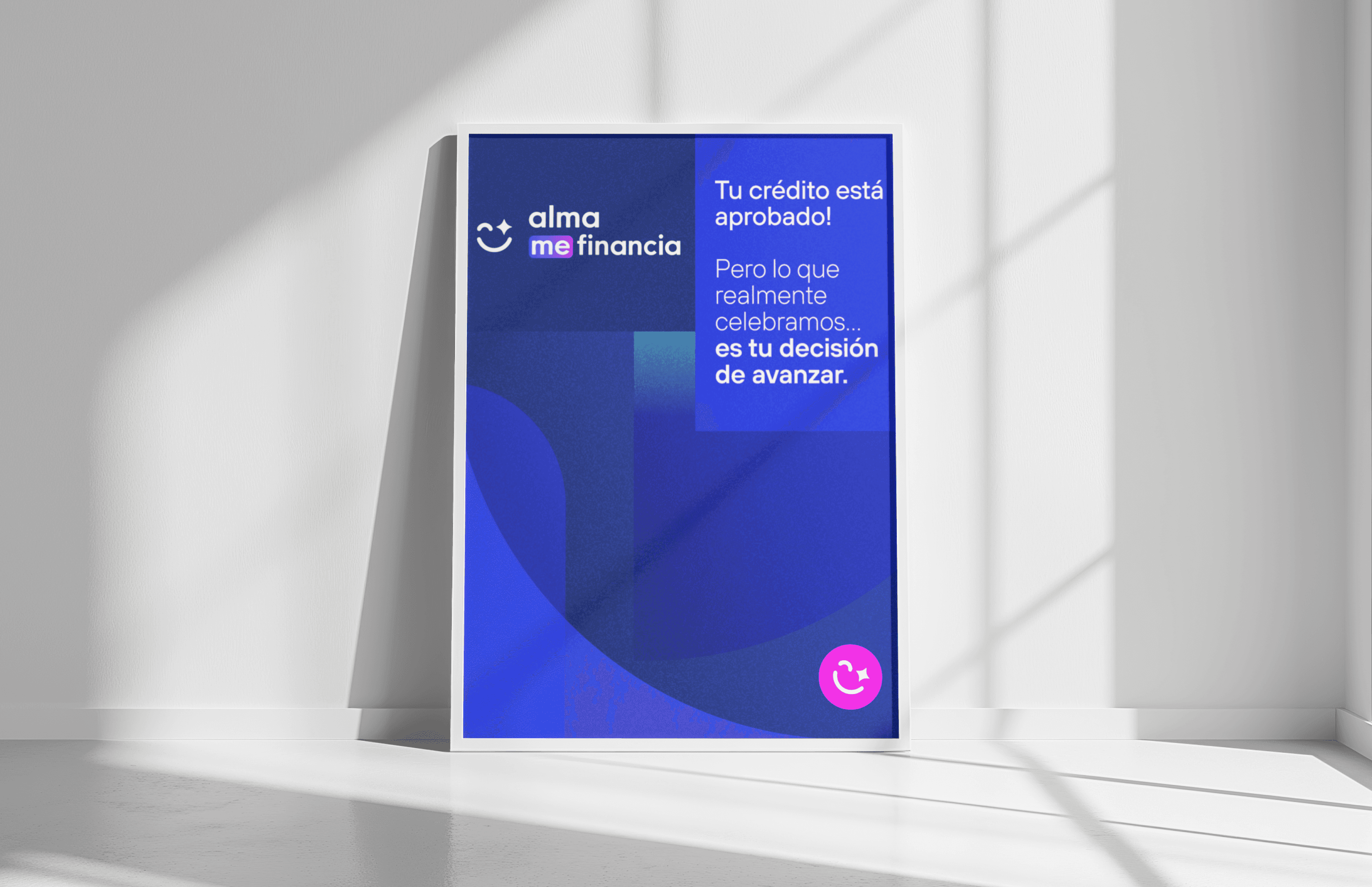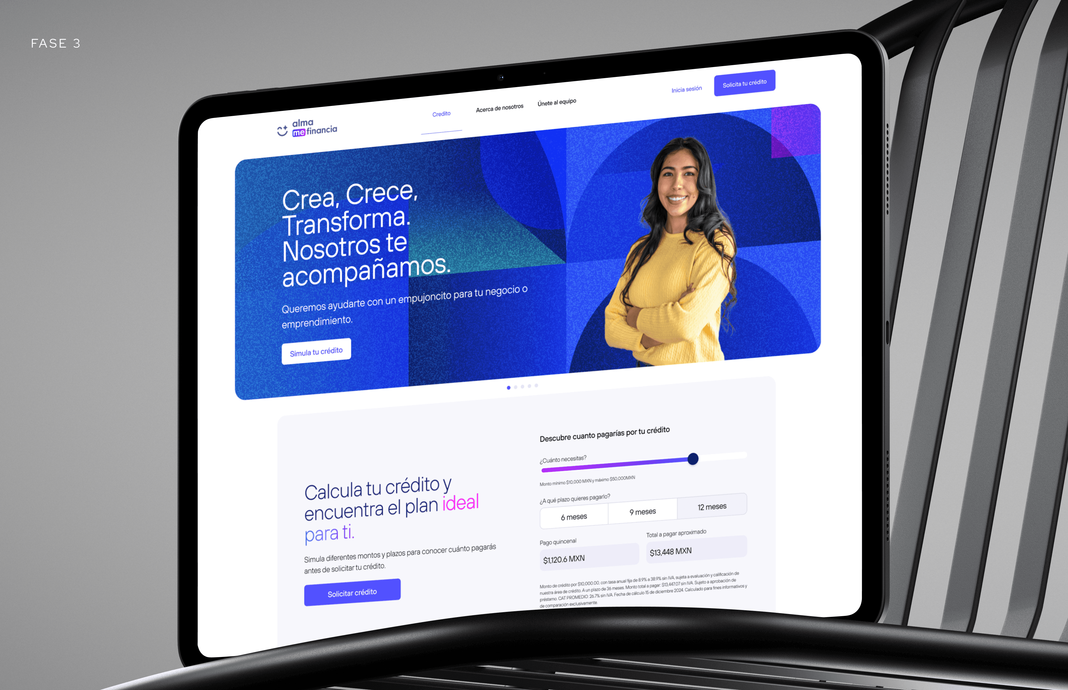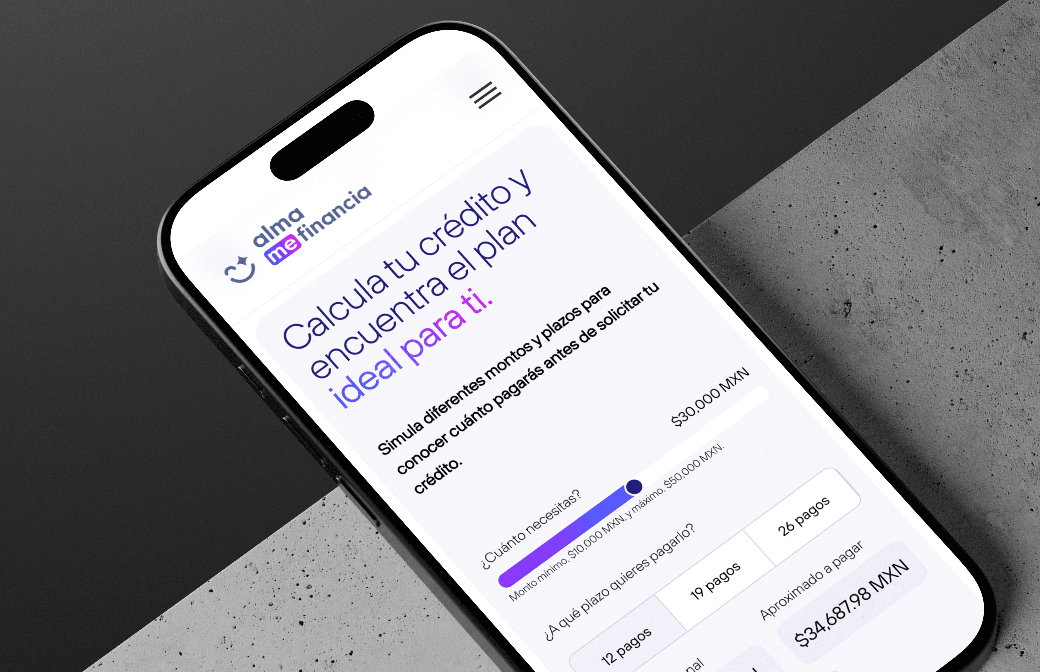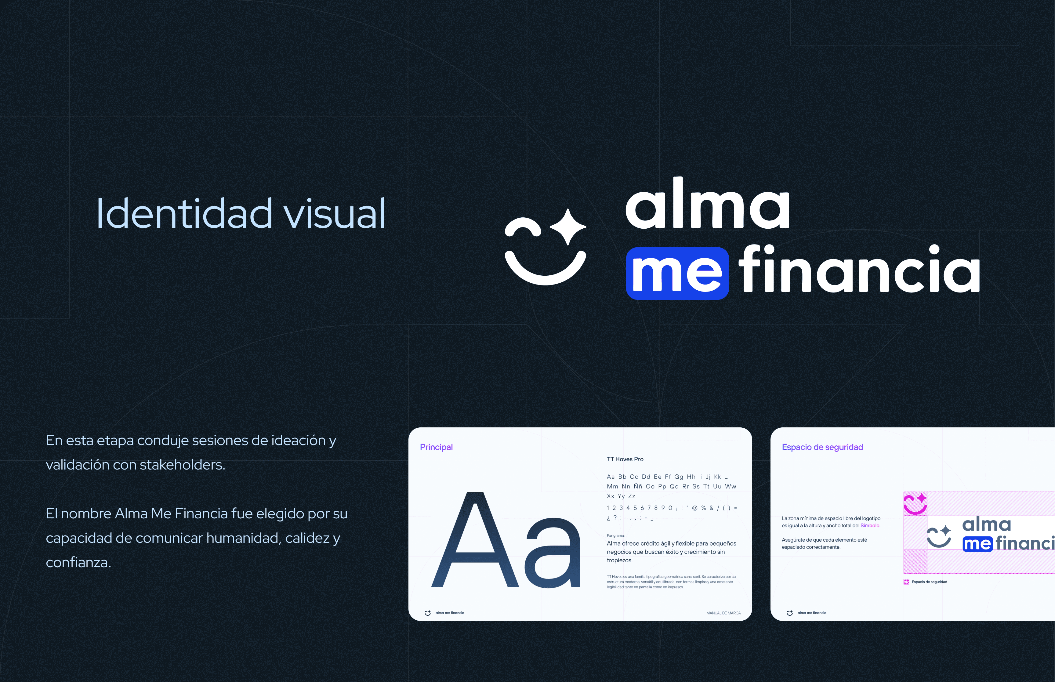 Mi enfoque combinó dirección creativa, estrategia de producto y pensamiento de diseño para asegurar que Alma Me Financia naciera con una identidad clara, empática y escalable.