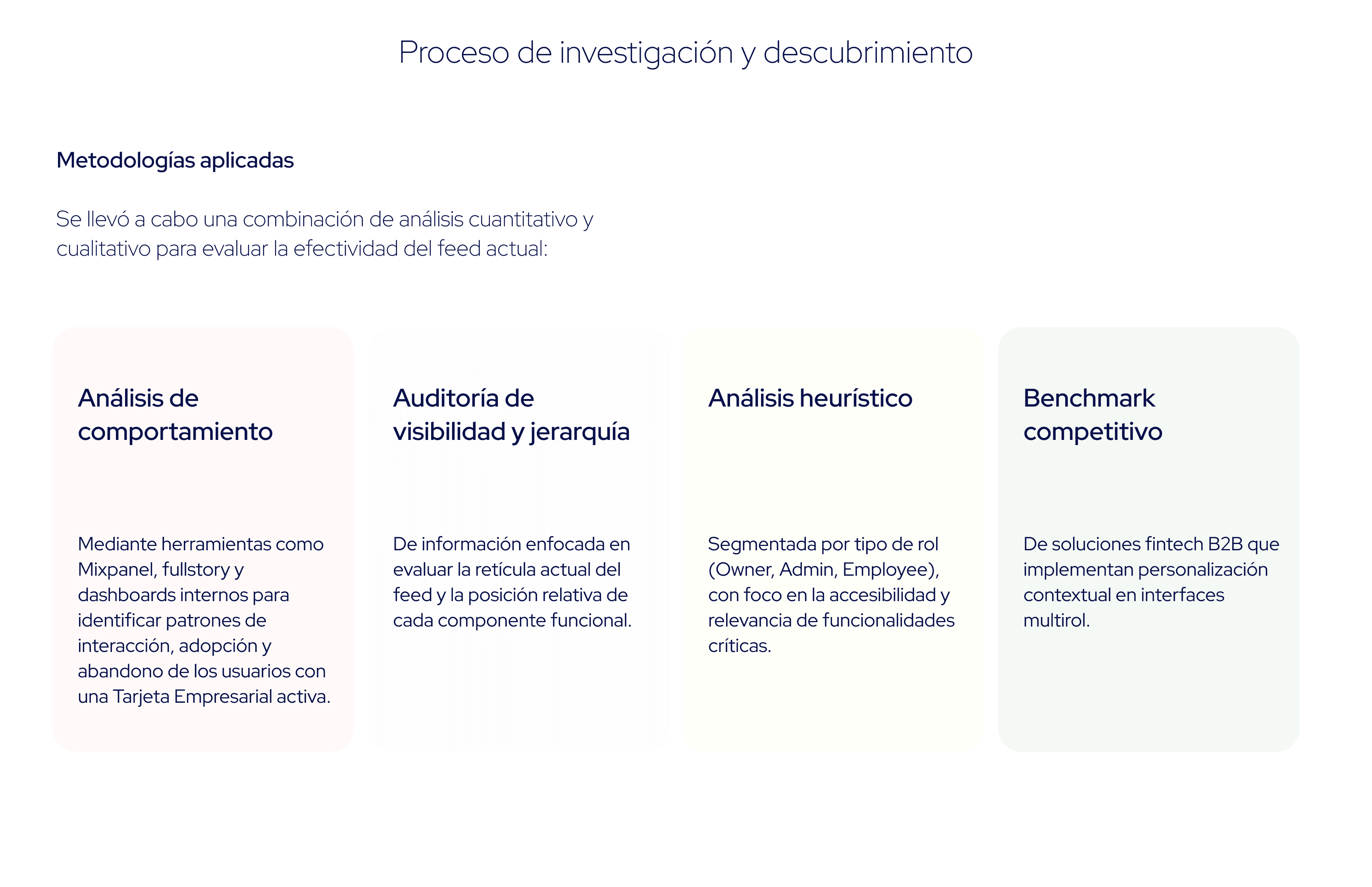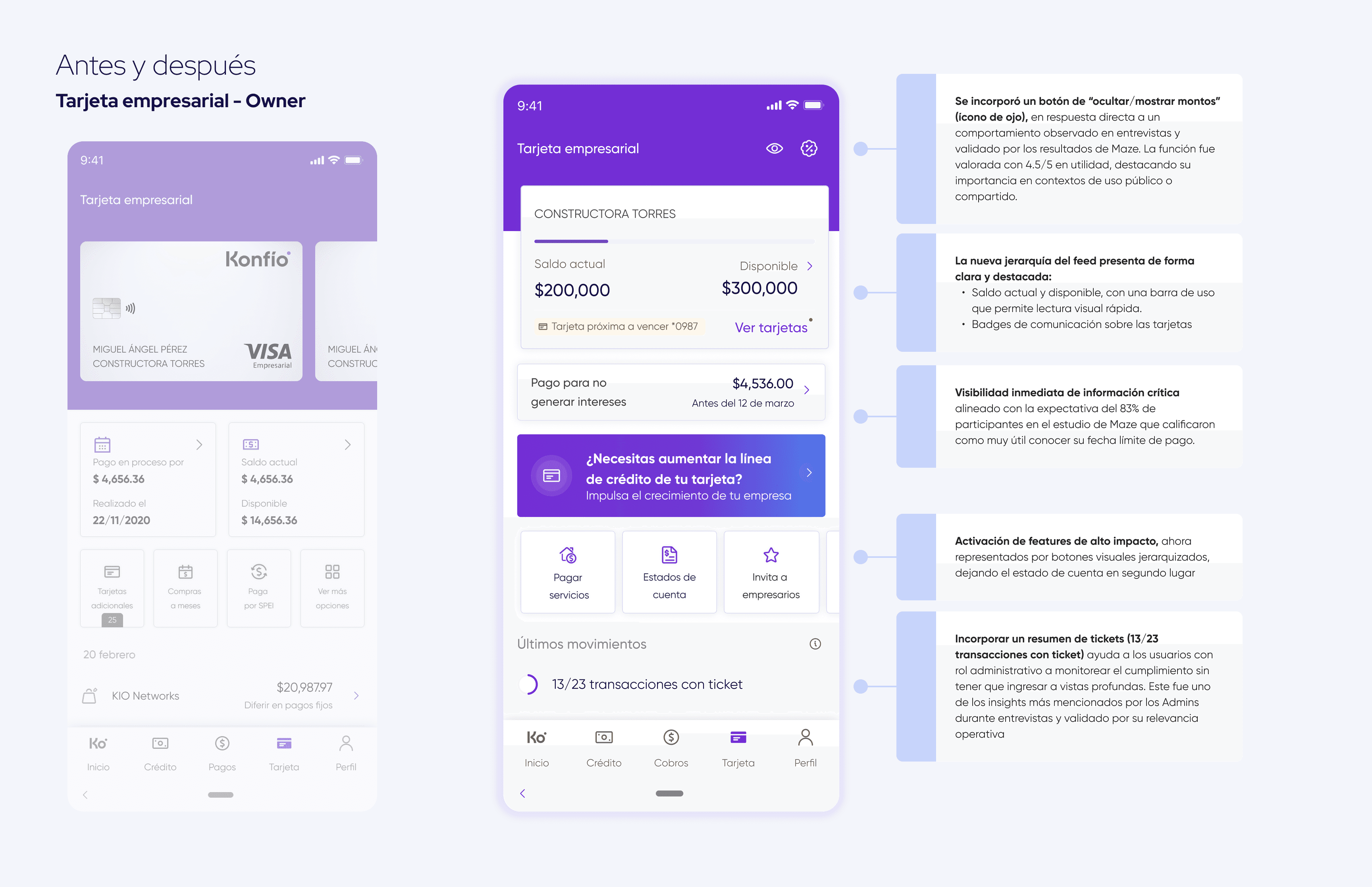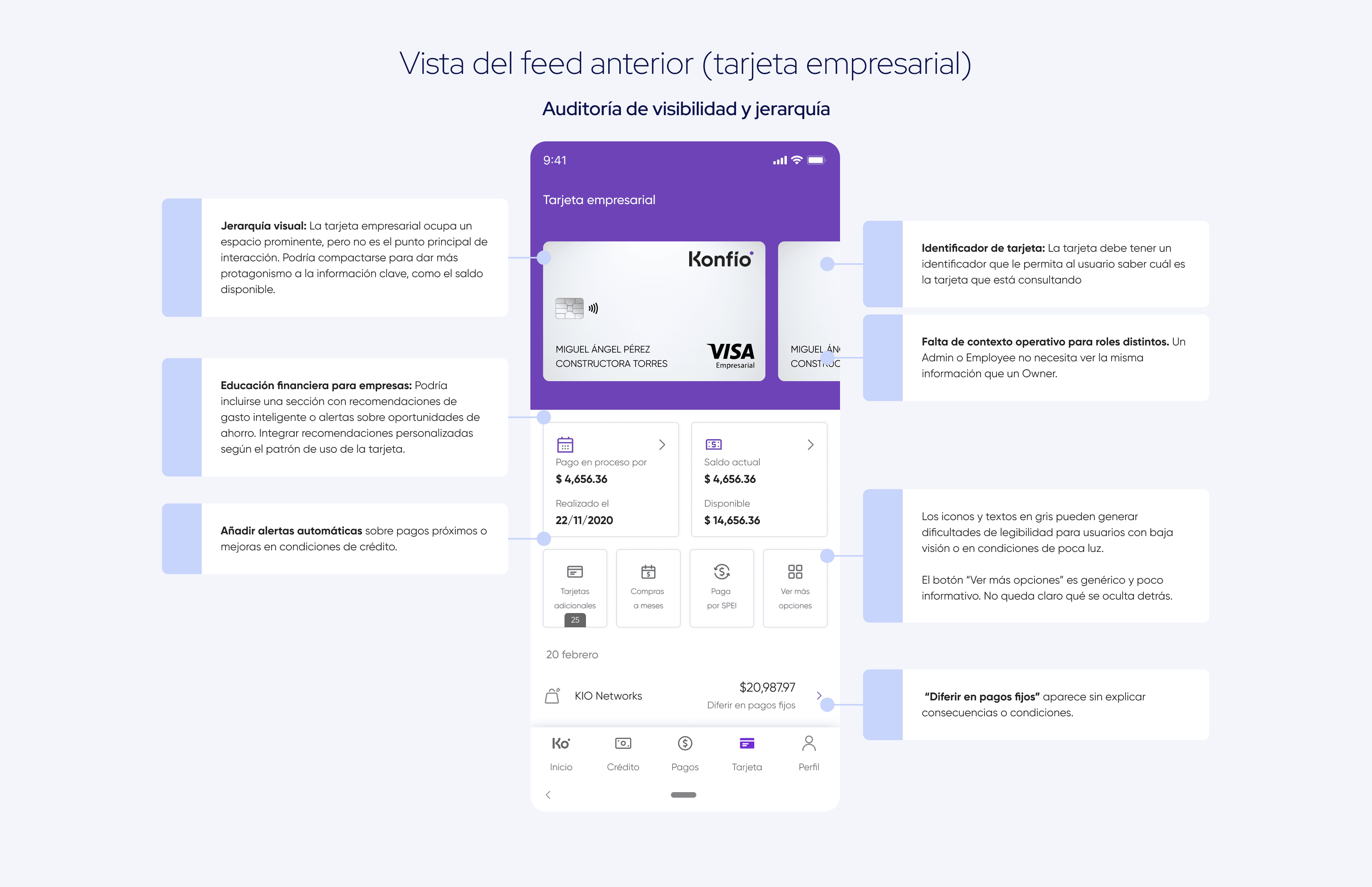Rediseñar el feed de la Tarjeta contextualizado por tipo de rol (Owner, Admin, Employee), que priorice los features más relevantes según sus responsabilidades y necesidades operativas.