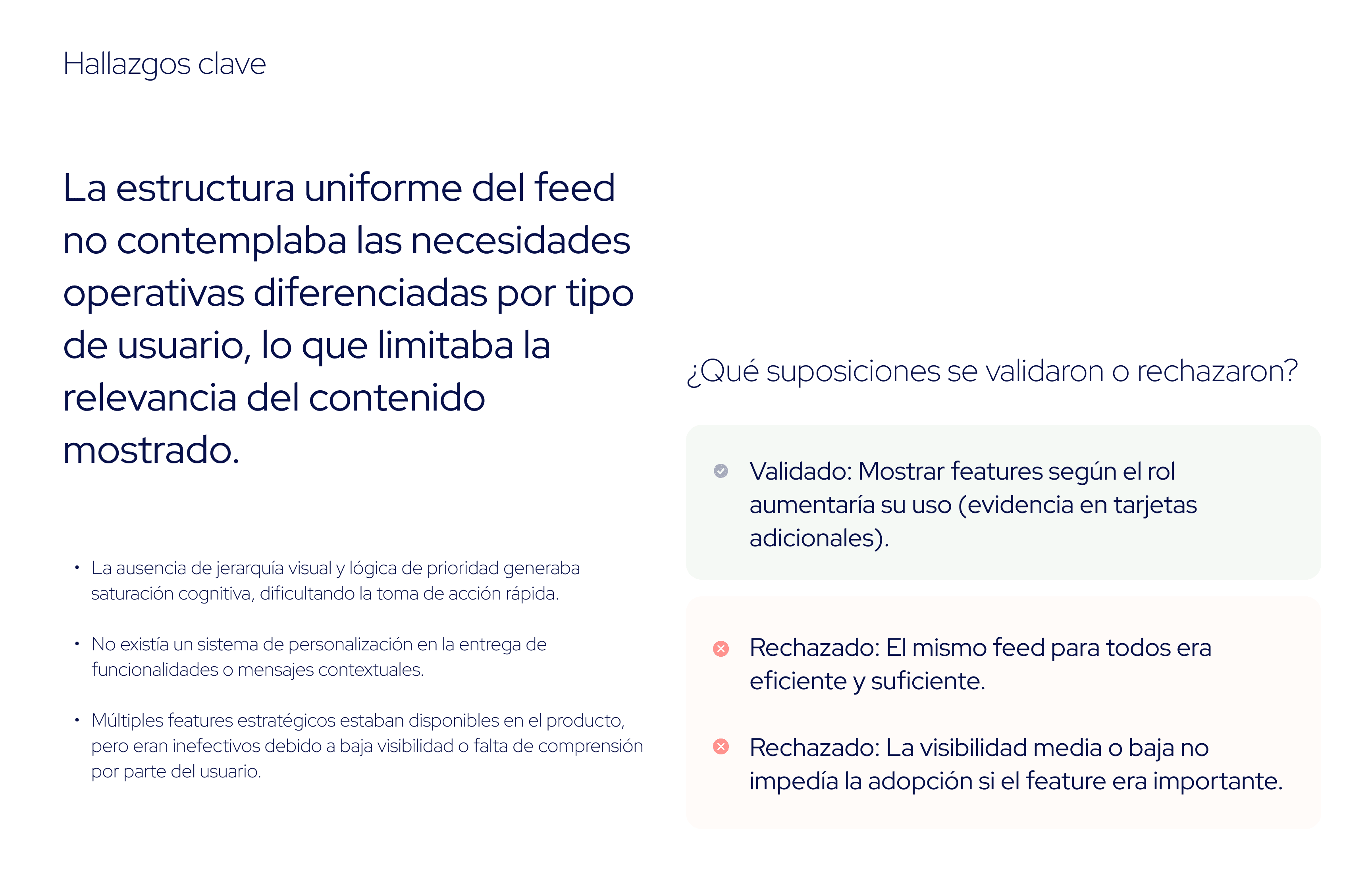 El enfoque en visibilidad y jerarquía, más allá de simplemente "tener la funcionalidad", resultó en una priorización más efectiva de lo que realmente mueve el comportamiento.