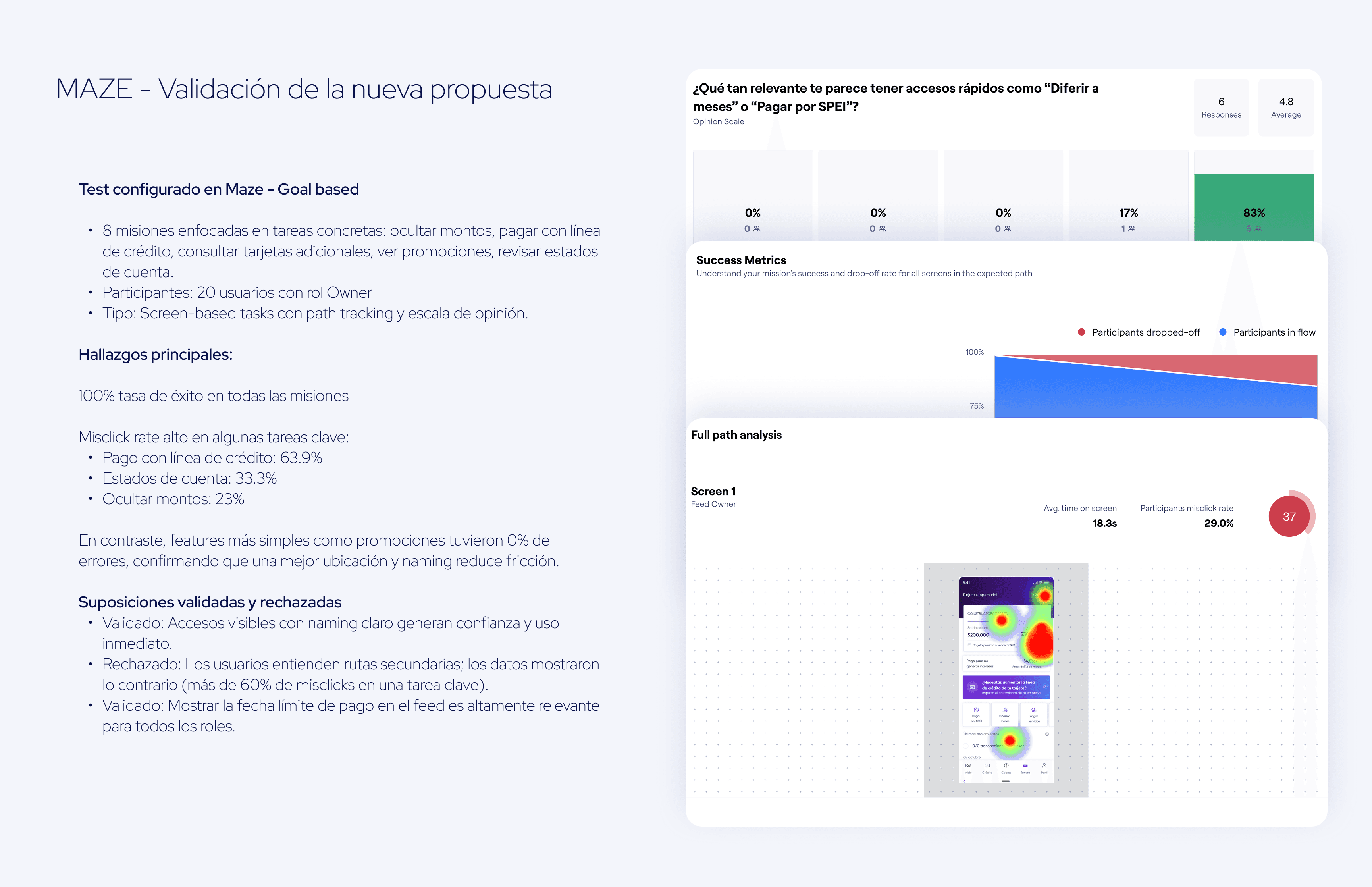 Incorporar test cualitativos rápidos previos al release con usuarios reales habría permitido ajustes de último momento en zonas de alto impacto.